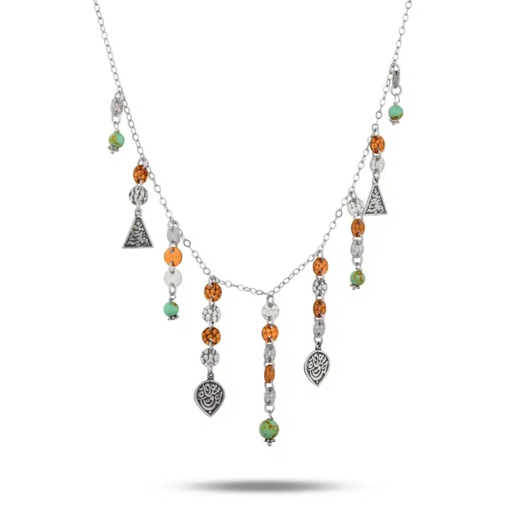 سلسلة مميزة بالأحجار الملونة وأشكال هندسية عليها كلمات…