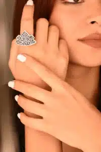 خاتم من الفضة عيار 925 منقوش ومثلث الشكل