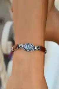 سوار من الفضة و الأحجار الملونة منقوشة بعبارة لست أمام عيني لكنك كل ما أرى”
